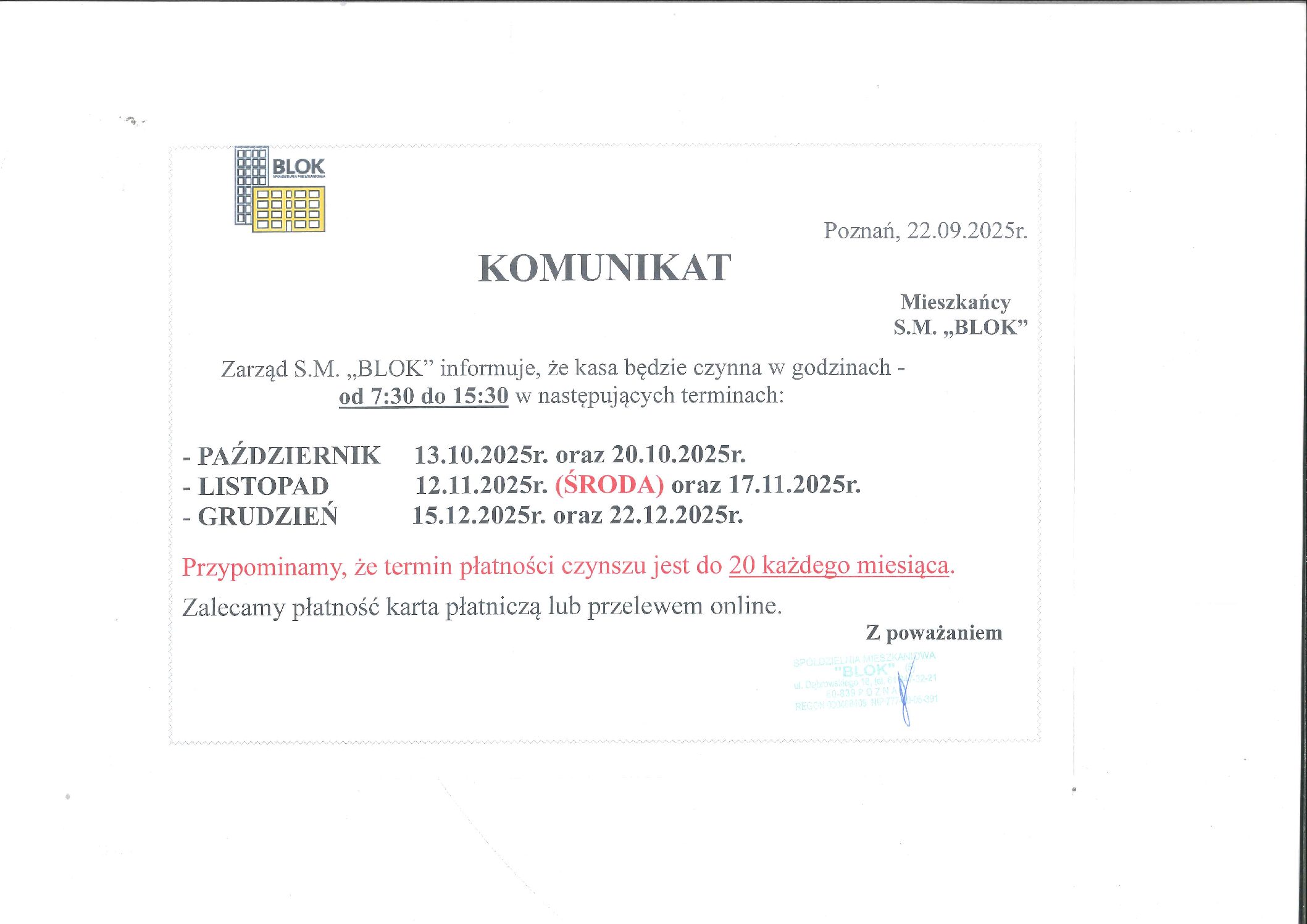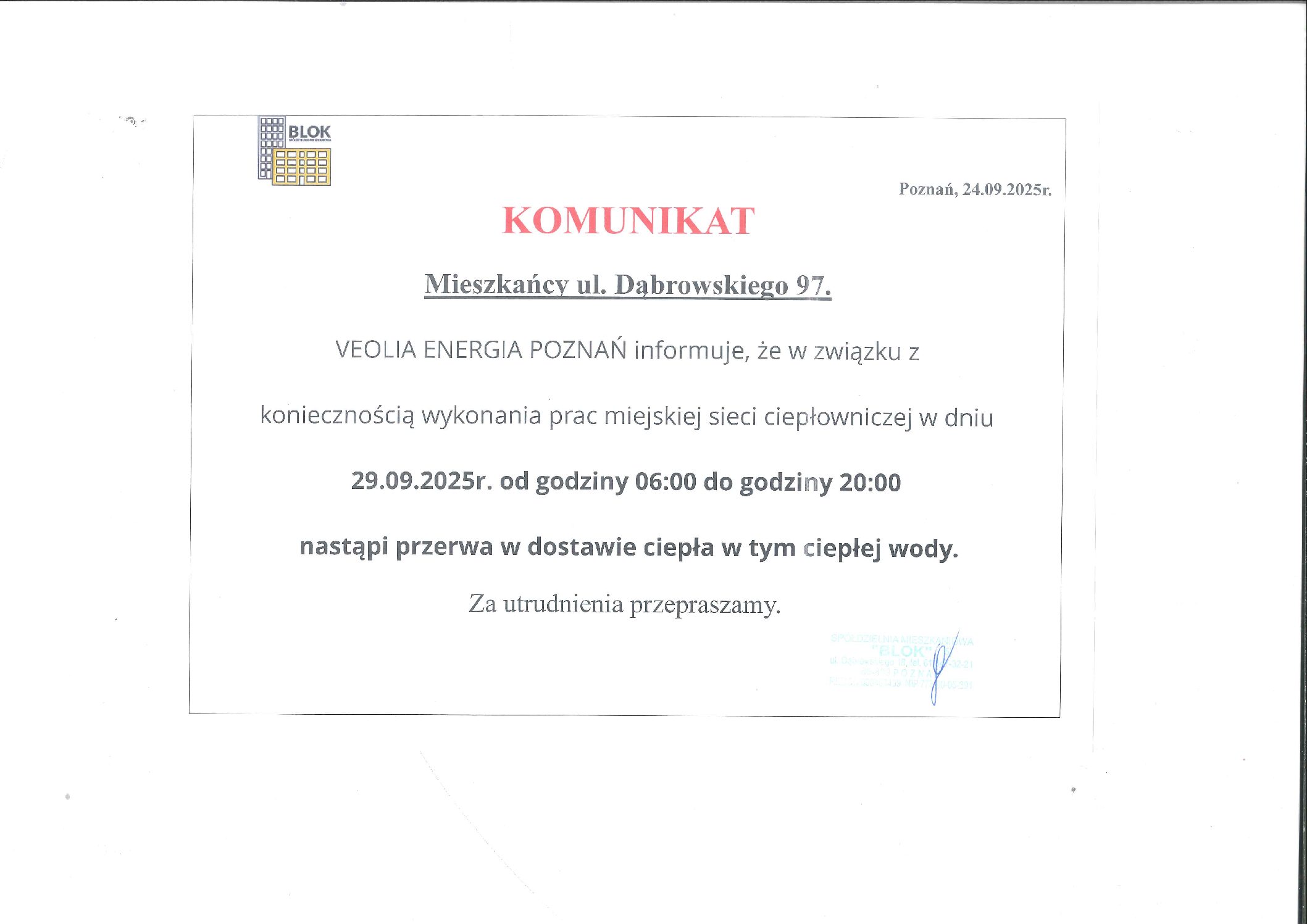Informujemy, że we wtorek 14 października 2025 roku w budynku przy Jeżyckiej 48 w godzinach 9-13 nastąpi przerwa w dostawie prądu. Jest to związane z pracami remontowymi w głównej rozdzielni elektrycznej.