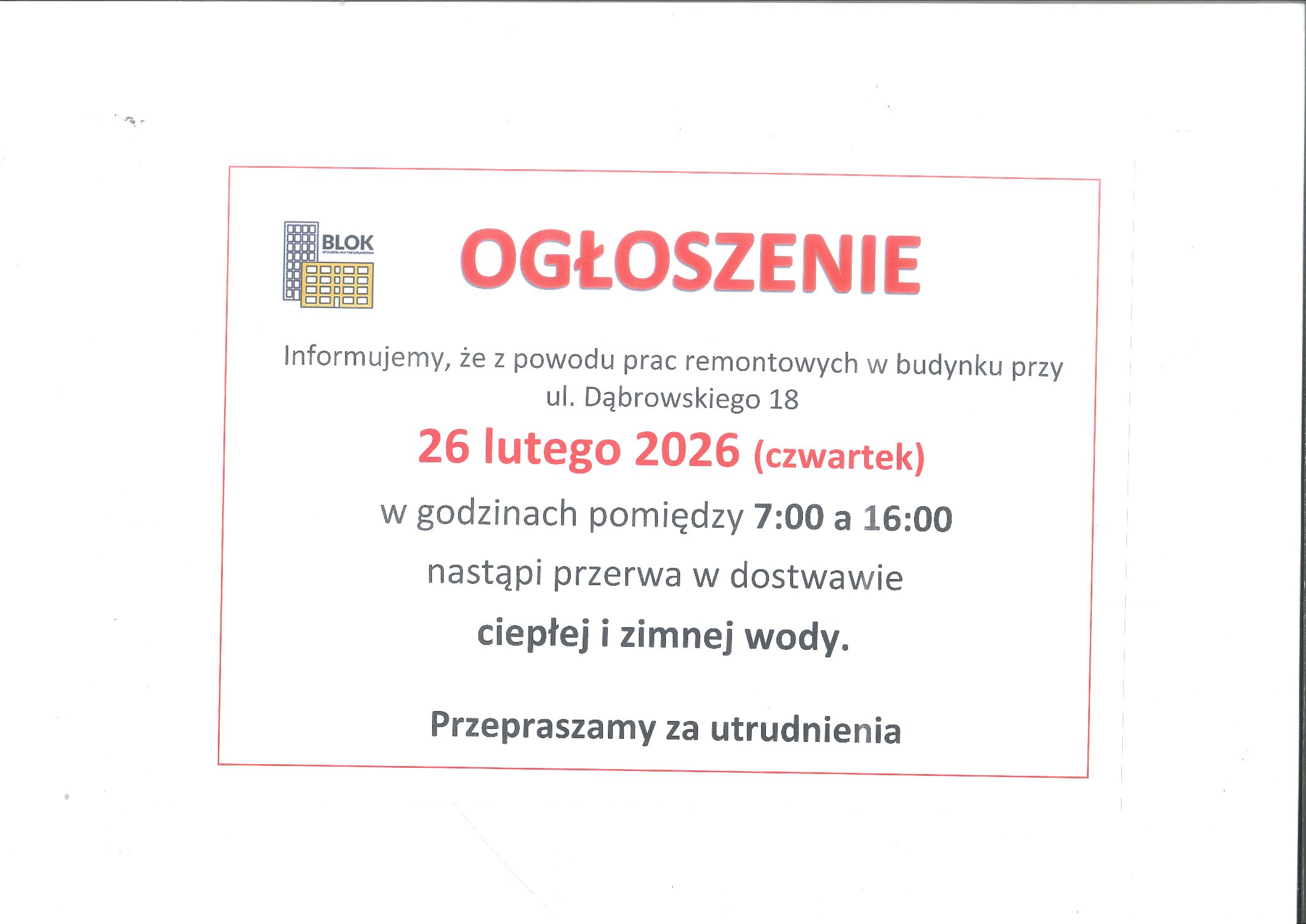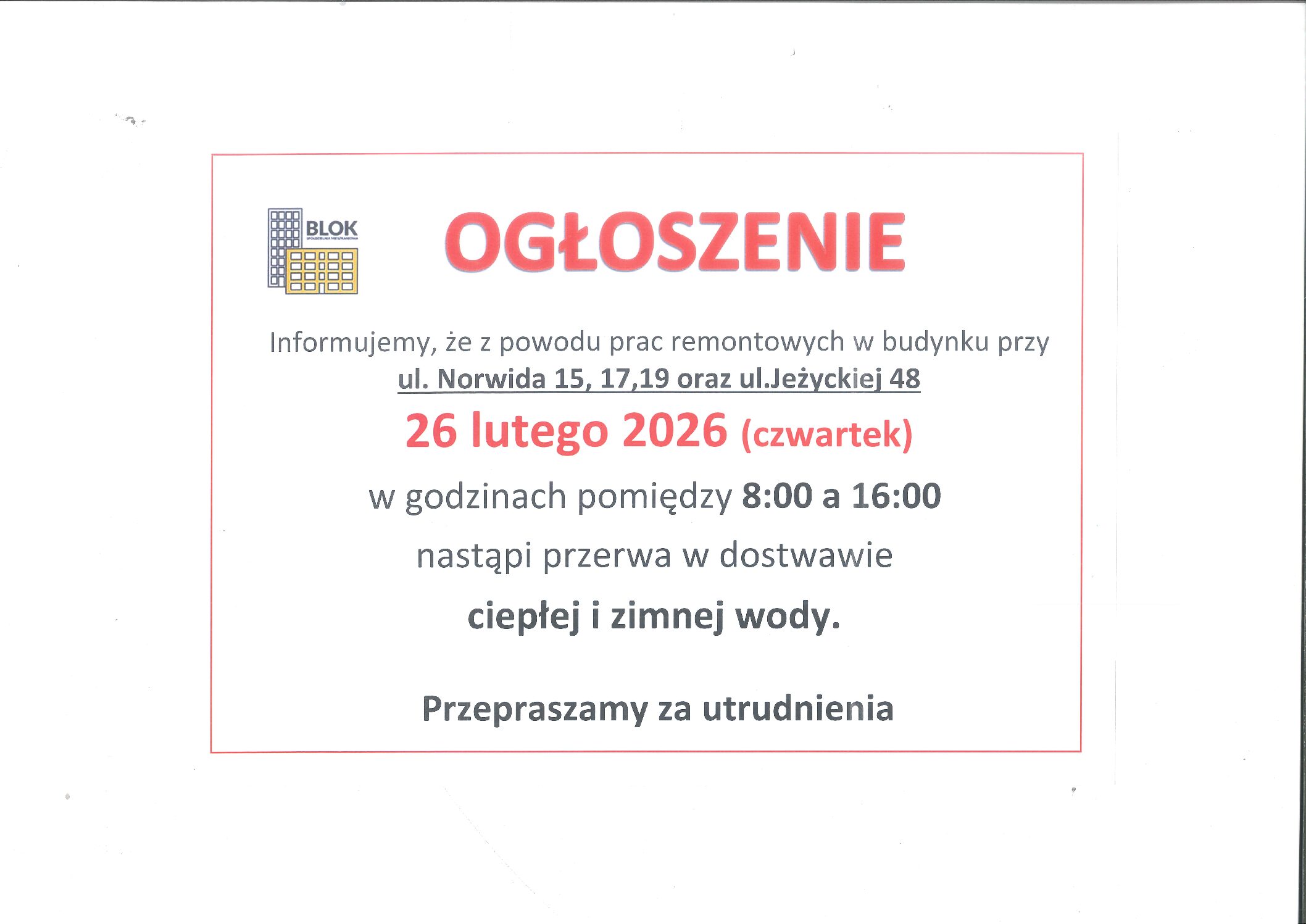 ZAWIADOMIENIE- w sprawie zmiany wysokości opłat za lokale mieszkalne, użytkowe i garaży od dnia 01.01.2026r.