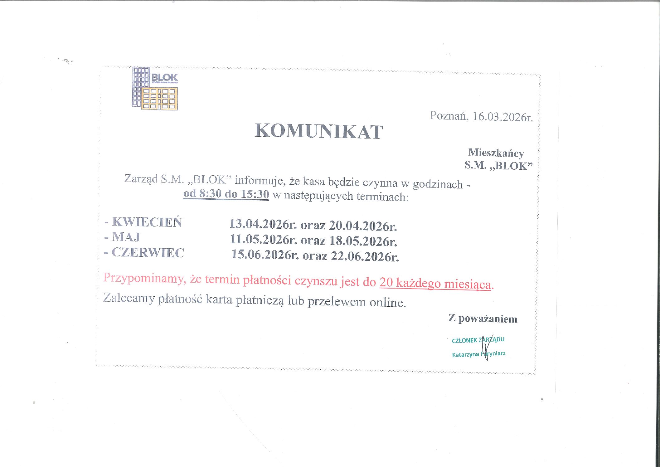 ZAWIADOMIENIE- w sprawie zmiany wysokości opłat za lokale mieszkalne, użytkowe i garaży od dnia 01.01.2026r. smblok 2026-01-05